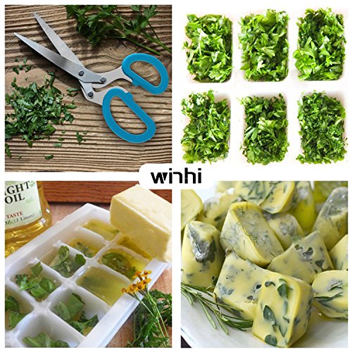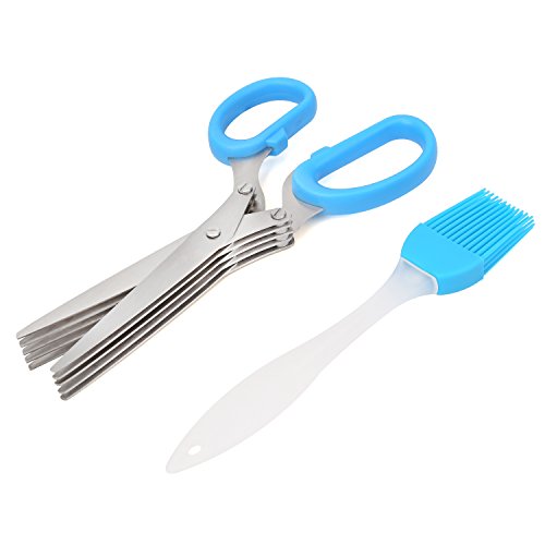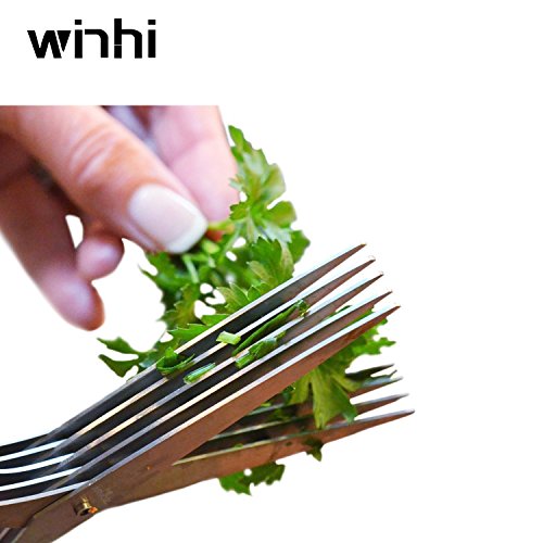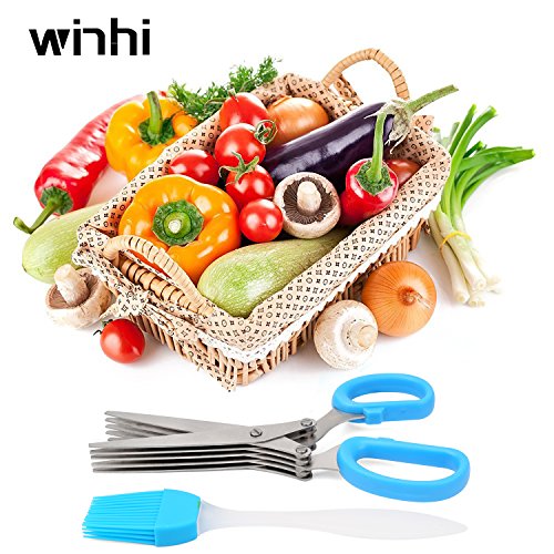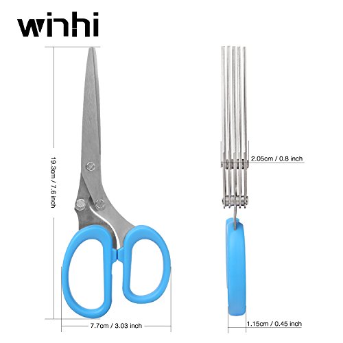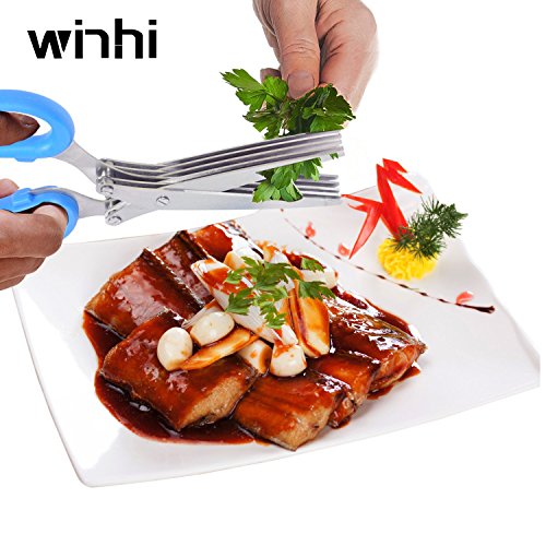 WINHI Herb Scissors Stainless Steel,Multipurpose Kitchen Shear with 5 Blades for Fast Herb Cutting, Chopping and Shredding with Clean Comb (Blue)