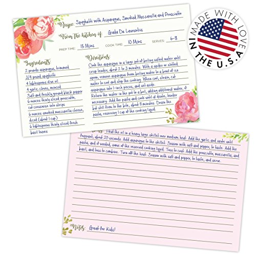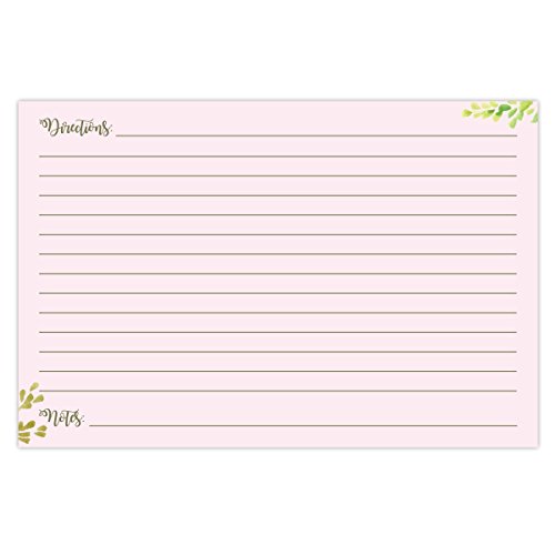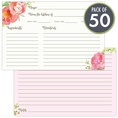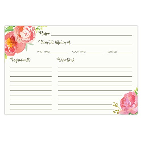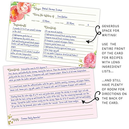 4x6 Recipe Cards with Pink Floral Design. Pack of 50, Perfect for Bridal Showers, Fits in Standard 4x6 Recipe Card Box Holders.