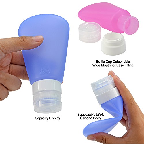 Silicone Travel Bottles Set, RockBirds Large Leak Proof Travel Bottles, FDA Certificated, TSA Approved (89 milliliter 3 Pack)