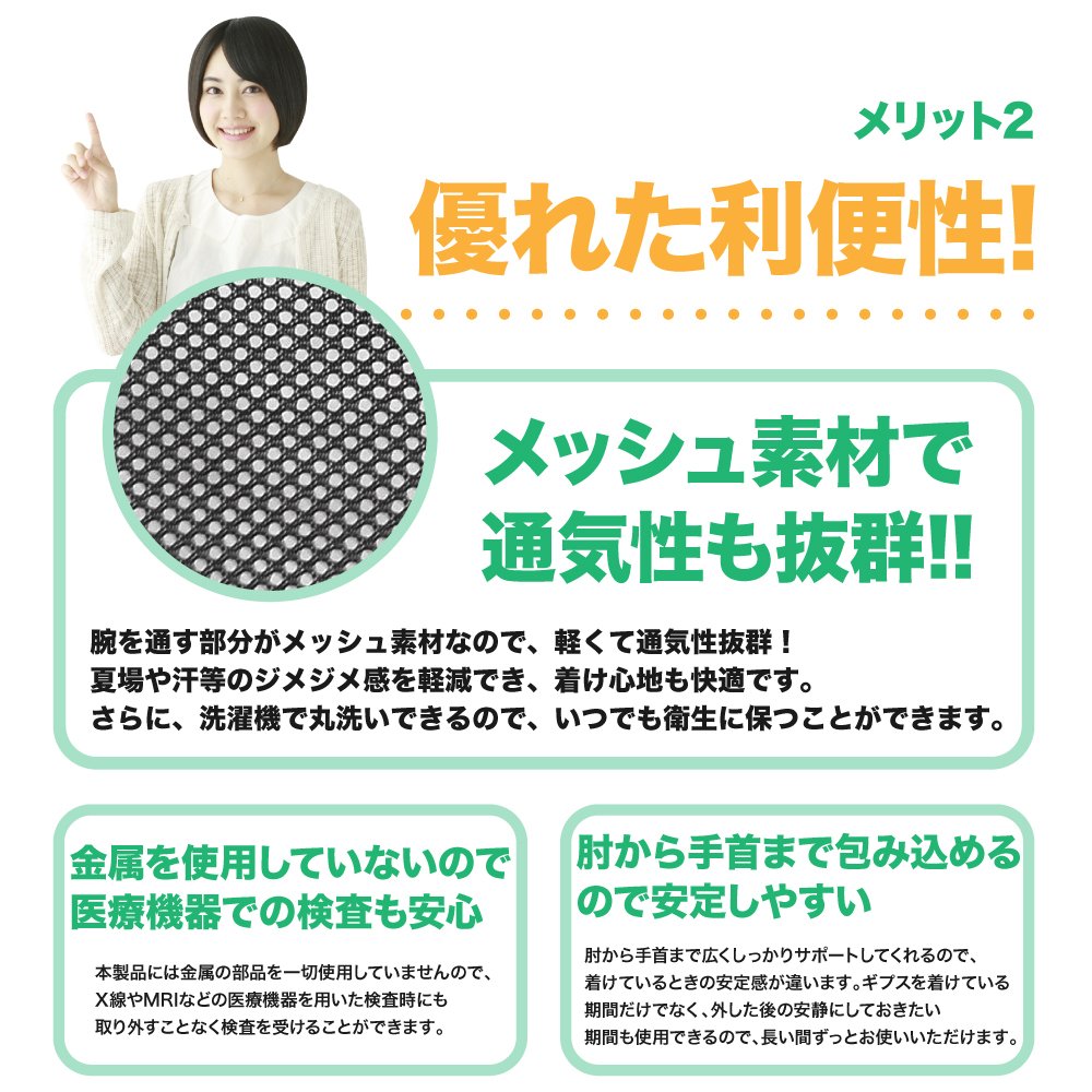 ■ Since it can be wrapped from elbow to wrist, it is easy to stabilize