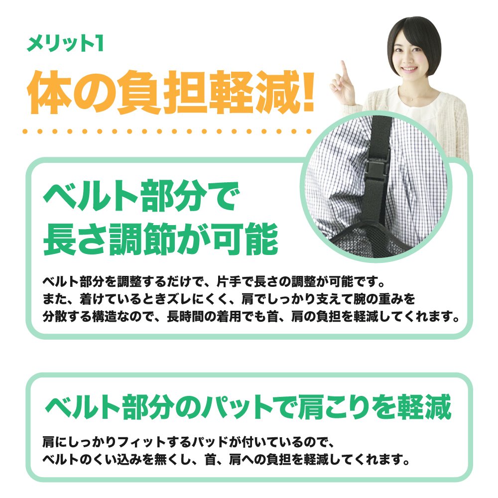 Also, since it is difficult to shift when wearing, it is a structure that supports the shoulder firmly and disperses the weight of the arm,