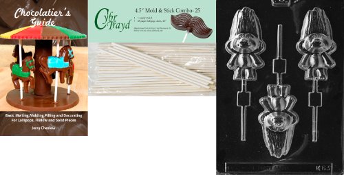Cybrtrayd 'Troll Lolly' Kids Chocolate Candy Mold with 25 4.5-Inch Lollipop Sticks and Chocolatier's Guide