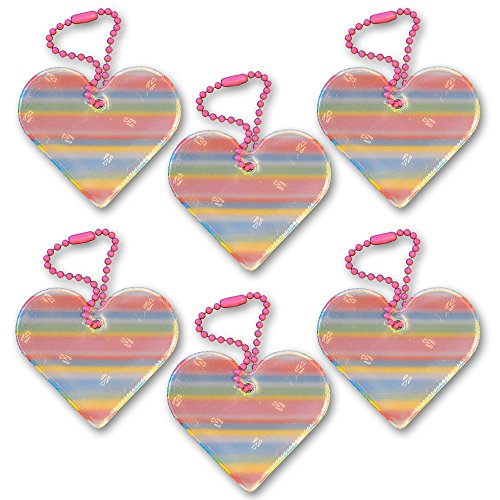 funflector Safety Reflector - Heart - Rainbow - 6-pack