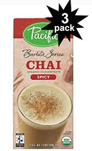 -. Feature : 3 Pack of 32oz Barista Series Organic SPICY CHAI LATTE Concentrate by Pacific Natural Foods / Handcrafted, authentic chai flavor...made simple! We brew Fair Trade CertifiedTM organic black tea in small batches and combine with cane juice, honey and a robust blend of cardamom, ginger, nutmeg, cinnamon, clove and black pepper. The result is a warm, spicy flavor profile with a hint of sweetness.