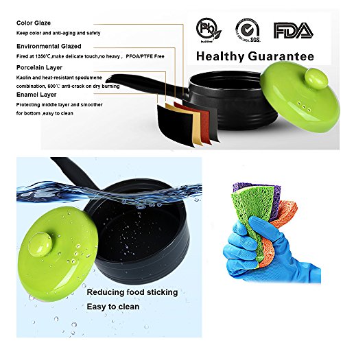 USEFUL AND FASHION DESIGN: Use high temperature long handle, anti ironing design. Cap humanized design, anti ironing, high temperature, solid, corrosion resistance. Perfect for boiling milk and making sauces, it is also a nice option to making meat & vegetables dishes, fully decomposed food nutrition than iron pots. Beautiful and bright color design.