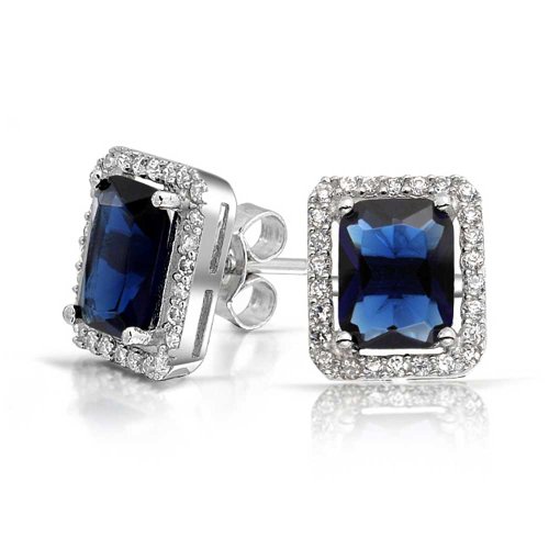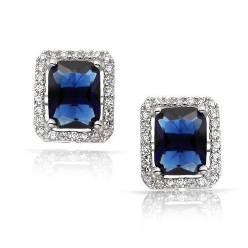 -. Title : Bling Jewelry Emerald Cut Simulated Sapphire CZ Stud Earrings 925 Sterling Silver
