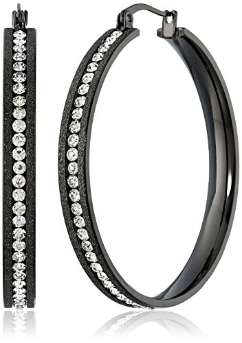-. Feature : Black stainless steel hoops in textured finish featuring channel-set crystals at center / Click-top backings / Imported