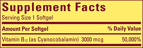 Nature made vitamin b-12 3000 mcg softgel is essential for energy production and a healthy nervous system. Vitamin b-12 also promotes maintenance and growth of tissue.Feature