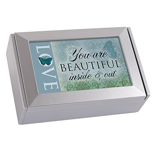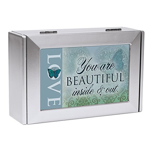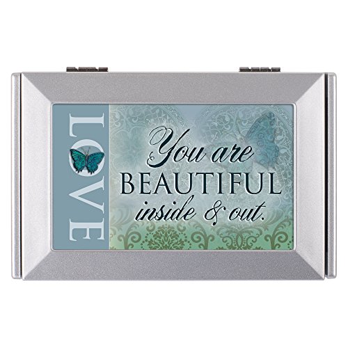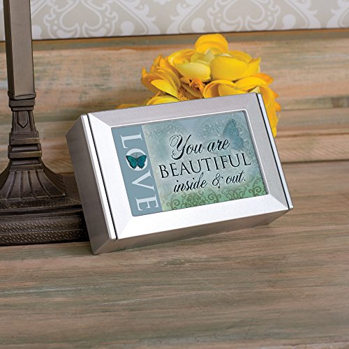 Love Beautiful Inside and Out Blue Butterfly Silvertone Petite Keepsake Jewerly Box