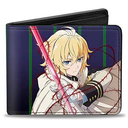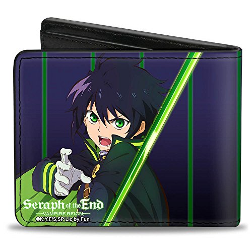 Studio : Buckle-Down Publisher : Buckle-Down Binding : Apparel Product Description This awesome men's bi-fold wallet is made from premium vegan leather. It measures 4.0x3.5x0.5 inches, and features the standard billfold, 5 card slots, and windowed id holder. The logos are applied using advanced printing technologies, so the wallet will still look good after years of hard use. This product is officially licensed by seraph of the end and made in USA by Buckle-Down Inc. 0