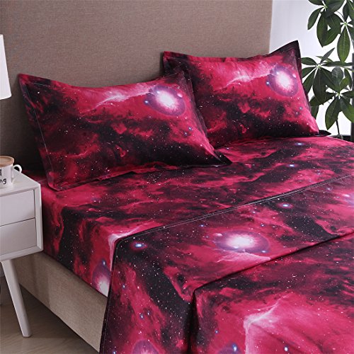 Features: Material: 30% Cotton 70% Polyester Microfiber 3D reactive printing, outerspace galaxy universe pattern, very attractive, so that the sheets will stay vibrant for many years to come.