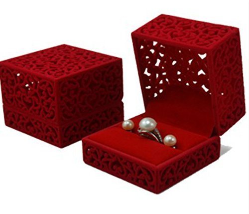 - Title : LittleTiger® Pierced Velvet Jewelry Box for ring engagement gift wedding favor (Red)
