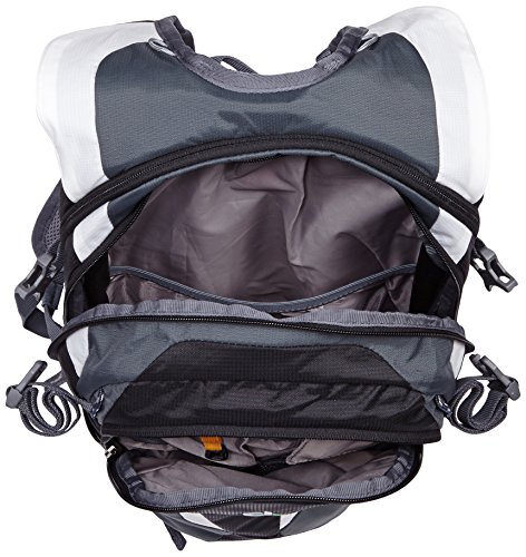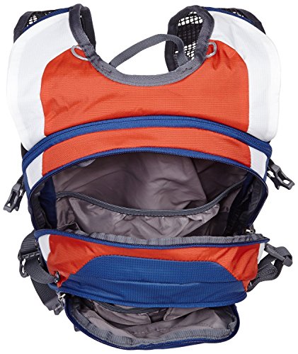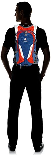 -. Feature : Mesh shoulder straps, mesh hip fins with two zipped mesh pockets and airstripes back system for all-round ventilation / Hydration system compatible with bladder compartment, Velcro sealed tube channels and mouthpiece holder / Bike pump sleeve / Stow-away helmet flap / Rain cover