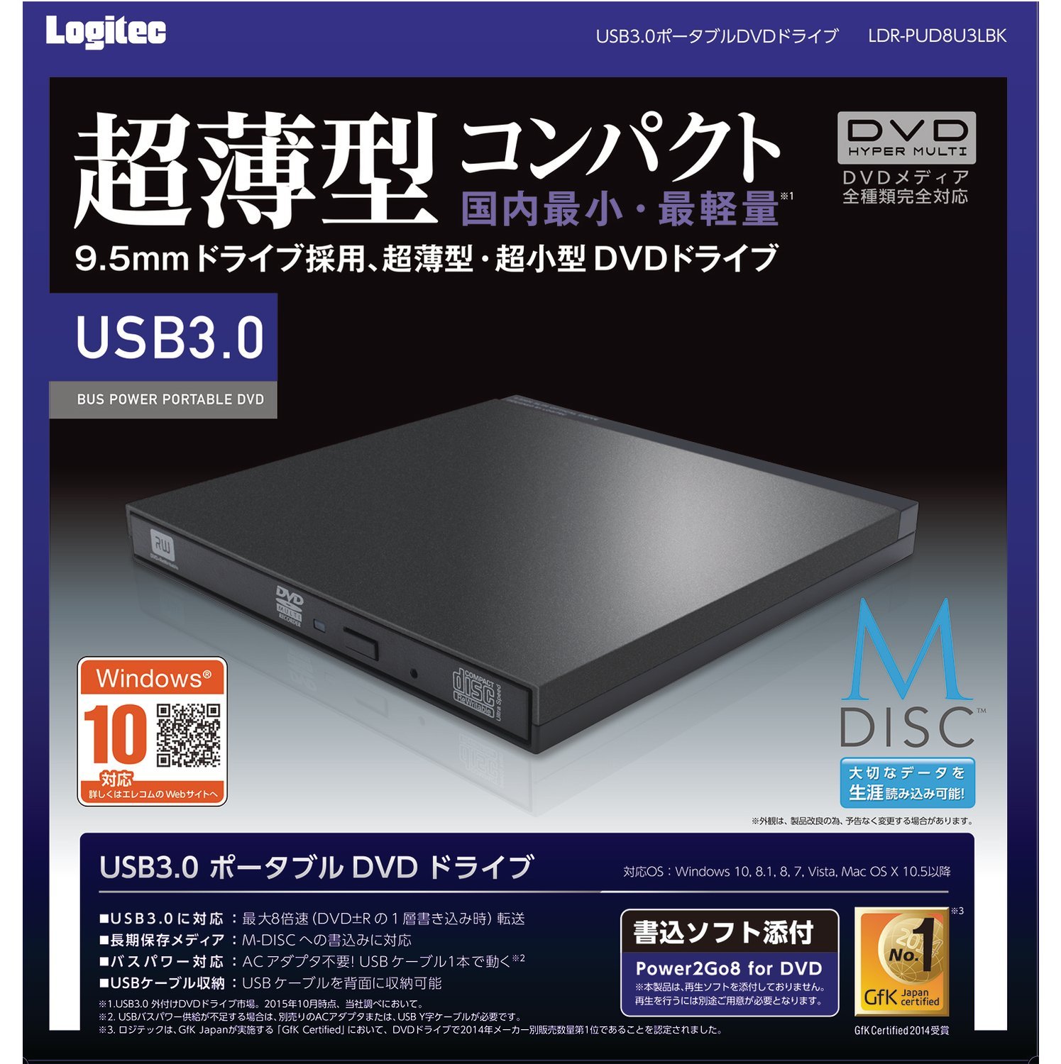 Logitec portable DVD drive USB3.0 native drive adoption writing software comes with black LDR-PUD8U3LBK