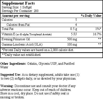 Evening Primrose Oil 500 Mg - 200 Softgels