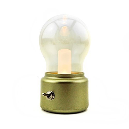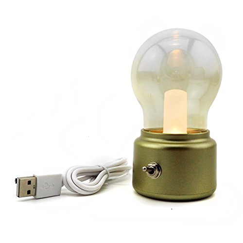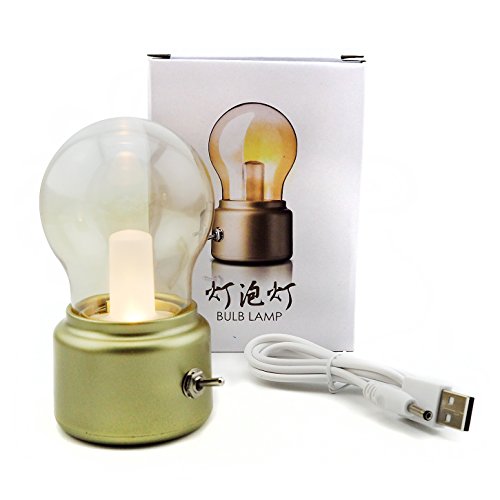 WayWay Retro USB bulb lamp bulb rechargeable battery charging Night light LED energy-saving light source bed decoration lamp (Gold,With USB Line))