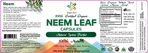(Organic Aura)/Vitamins Dietary Supplements/Herbal Supplements/DIRECT FROM USA/Certified Organic Neem Capsule. 100 Veg Easy Swallow Capsules. Naturally Supports Cleansing and...