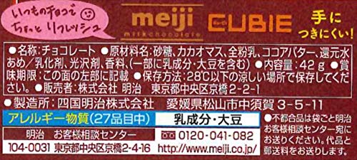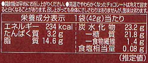 原材料:砂糖、カカオマス、全粉乳、ココアバター、還元水あめ、乳化剤、光沢剤、香料、(一部に乳成分・大豆を含む)