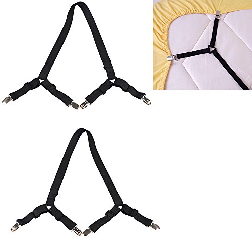 Adjustable Bed Sheet Fasteners Suspenders, Alotpower 2 Way Adjustable Crisscross Fitted Bed Matress Sheet Straps -Black(1 Set)