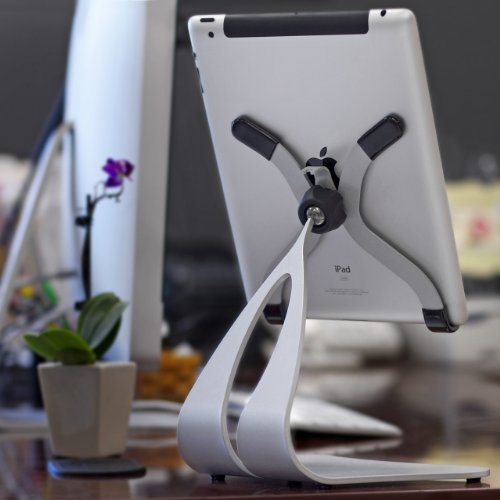 -. Feature : iPad Pro 12.9, iPad Pro 9.7, iPad Air 2, iPad Air, iPad 4g, 3g, iPad 2, 1g and more - Product Weight 3.2 LBS - Anti-tip low and user focused center of gravity - Solid Steel / 3/4 inch steel ball pivoting holder, 90 degree motion left to right, forward and back. Artistic shape and design without or with a case or skin. / Watch the "Stabile PRO - Pivoting iPad Stand" video to see how this pivoting stand is the fastest easiest and most stable stand to use / Spilt back cable management - Low texture black finish (Search for other finishes - Silver, Black, White) / 4 holding pad locations (Vinyl) - Stabilization non-skid black feet (3M polyurethane)(4)