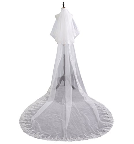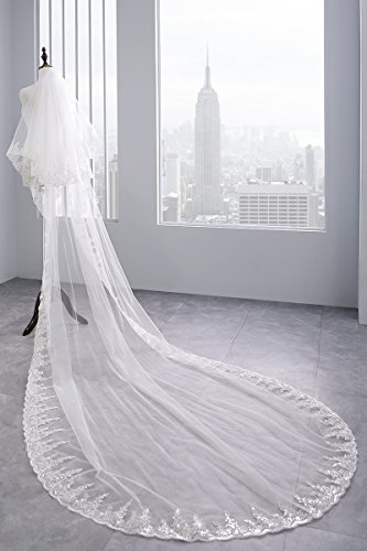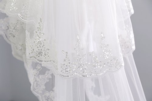 Beautiful Veils made of 100% high quality Tulle. finished with sequins applique lace edge.Please reference our pictures. Veil Total Length:3.8M=380 cm, Long Layer Length : 3M=300 cm; Short Layer Length 0.8M=80 cm; Width: 1.5M=150 cm; Weight:300(±30)g Color: White/Ivory. Comes With comb. 2 Tiers.Long Train.Perfect match with any communion and other unforgettable events. Two shipping method Standard Way And Expedited Way Available .Standard shipping takes 10-15 days to arrive ,Expedited Way takes 3-5 days to arrive. Please contact with us if you want to get this veil earlier. 0