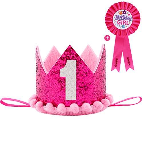 -. Title : Maticr Glitter Baby Boy Girl First Birthday Crown & P.R.Ize Badge Number 1 Headband Cake Smash Photo Prop