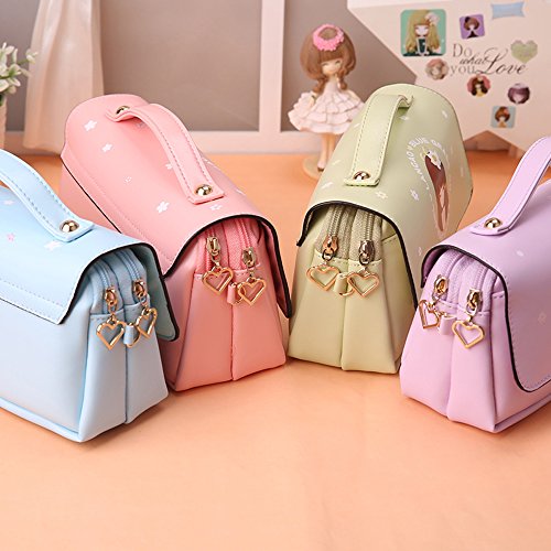 Cartoon Cute Pencil Case w/ Top Handle,Large Capacity Zipper Pen Pouch Bag Case for Organizing Gel Pens,Colored Pencils,Ruler,Eraser,Pads,Multi Layers Cosmetic Handbag for Toddler Kids Teens Girls