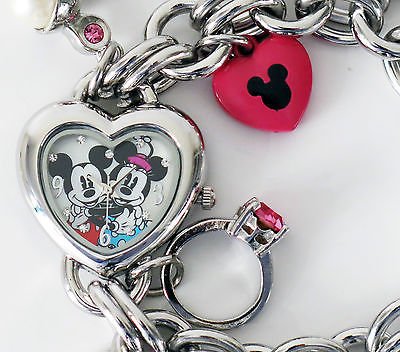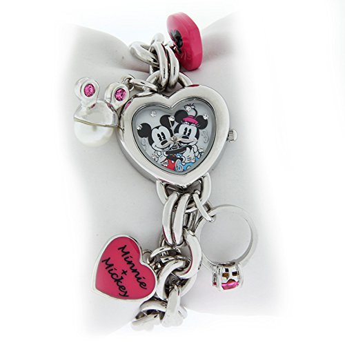 -. Title : Disney Minnie & Mickey Mouse Women's MN2054 Heart Dial Charm Bracelet Watch