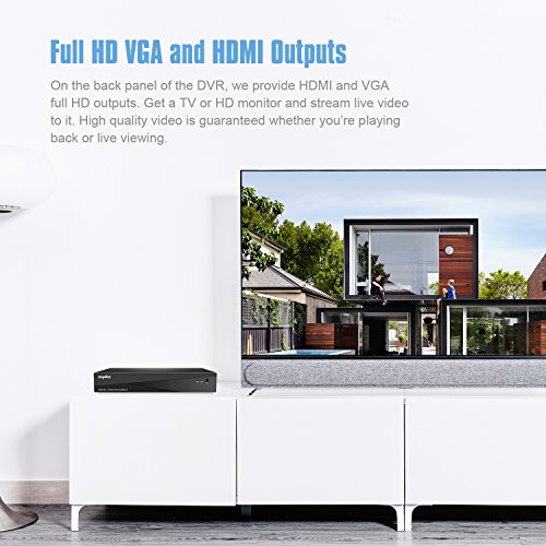 -. Feature : Battery Backup DVR: This UPS DVR is built with rechargeable battery to provide about 40mins(at day time) to 1.5 hours power supply for cameras when unexpected power failure happens / 720P HD Recording: Watch smooth movements and pristine color from the 720P video to keep closer eyes on your kids, pets, parents, employees and all that matters to you / Motion Detection& Email Alarm: Smart motion triggered email notification with customizable detection regions to help you monitor on those vital areas like the entrance, doorway, side window etc / Remote Access: Stream live video and record on your Android/iOS devices via the free viewing app from anywhere in the world with internet access / Premium IR LEDs generate 66ft night vision. USB Backup for peace of mind. IP66 weatherproof indoor and outdoor cameras for all-year-round protection