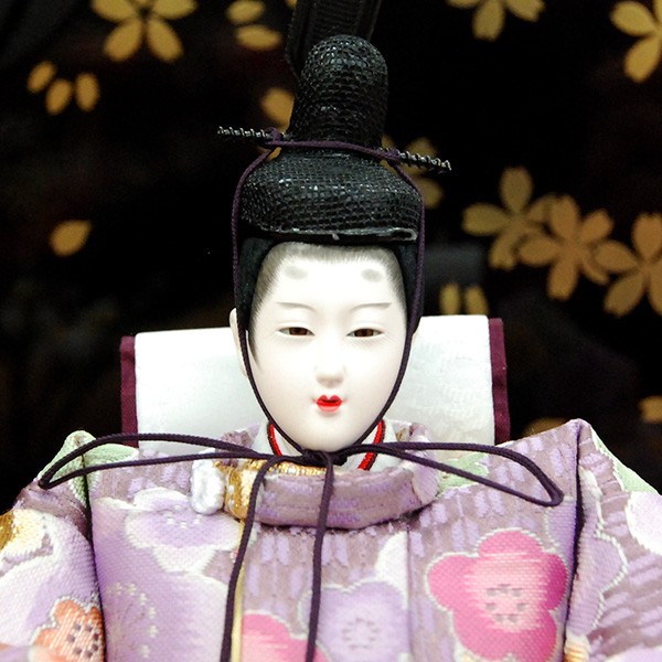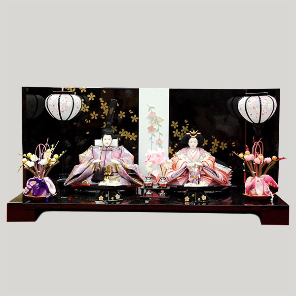 ・台座・屏風等には落ち着いた色目の雛人形セット。