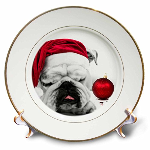 3dRose cp_62826_1 Sleeping Bulldog in a Santa Hat Christmas Card Photo Courtesy of Esther Matheus Porcelain Plate, 8-Inch