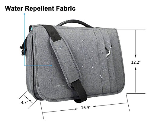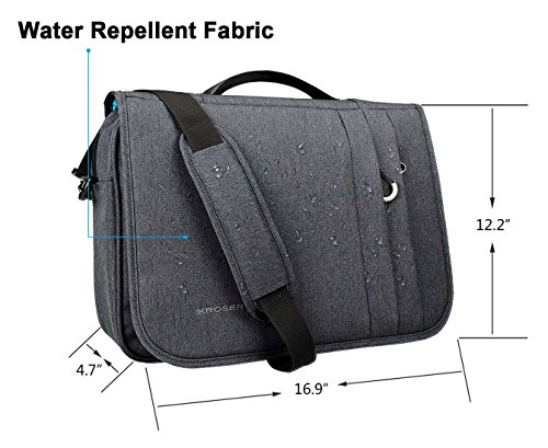 -. Binding : Personal Computers -. Brand : KROSER -. Feature : Material: Canvas Poly, water-repellent fabric; Size: 16.9"x12.2"x4.7". Fits up to 15.6'' laptop. / RFID Pockets: Identity protection function protects date encoded on most IDs, credit cards and passports. / Roomy Compartment: Includes padded 15.6" laptop pocket, a tablet carry sleeve and many inner organization pockets for contain necessaries. Besides that, one private pocket on the front top. / Luggage belt for fixing the bag on the trolley of a luggage. / Durable hardware and zippers &1 Year Mfg.'s Warranty against all defects extend the life of bag. -. Label : KROSER -. Manufacturer : KROSER -. Model : NTM-2832 -. ProductGroup : PC Accessory -. ProductTypeName : CARRYING_CASE_OR_BAG -. Publisher : KROSER -. Studio : KROSER -. Title : KROSER Briefcase Laptop Messenger Bag 15.6 inch Water-Repellent Light Weight Flapover Computer Case Business Shoulder Briefcase Laptop Bag with RFID Pockets for Business/College/Men/Women