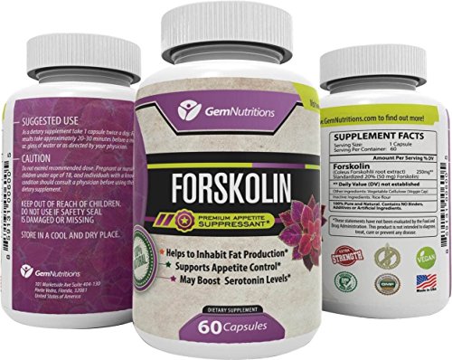 -. Feature : FORSKOLIN (COLEUS FORSKOHLII) - Helps to inhibit fat production by breaking down fat cells at the source. It Increases your metabolism while suppressing appetite and cravings / APPETITE AND CRAVINGS - Pharmaceutical grade Coleus Forskohlii helps curb your appetite and cravings so that you eat less. It's challenging to lose weight by willpower alone. Pure Forskolin will give you the support and encouragement you need by eliminating cravings and easing your hunger / QUALITY YOU CAN TRUST - Contains NO binders, additives, or artificial ingredients. Made in USA under a GMP certified facility. GMO-Free, Gluten-Free, and Vegan / NATURAL AND SAFE - From the vegetable based capsule to the extracted Coleus Forskohlii root, every bit of our product is 100% natural and safe to use. Natural, safe, and effective weight loss and energy support is offered by all natural Forskolin / GEM NUTRITIONS GUARANTEE - 100% Money Back Guarantee - No Questions Asked