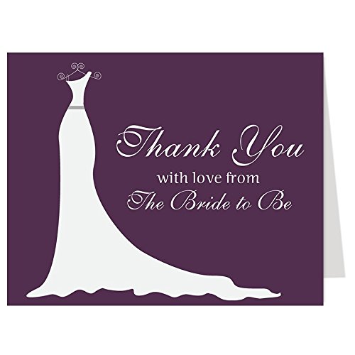 Simple Gown, Bridal Shower, Thank You Cards, Wedding Dress, Purple, Simply Stated, Thanks From the Bride to Be, Plum, Set of 50 Thank You Notes with Envelopes, FREE Shipping (Purple/Plum)