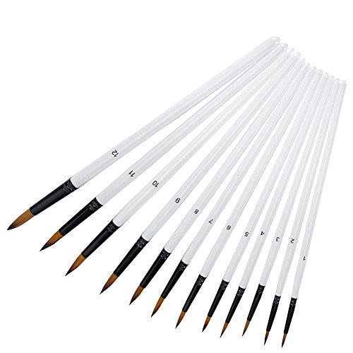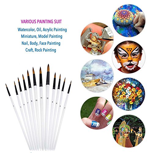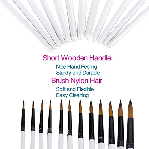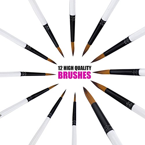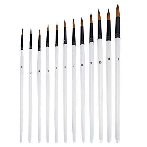 Ngwall Paint Brush Set Round and Flat Nylon Hair Stylist Watercolor Oil Painting Brush (White 12) For Acrylic, Watercolor Oil Painting Brush (Round head 12 sets)