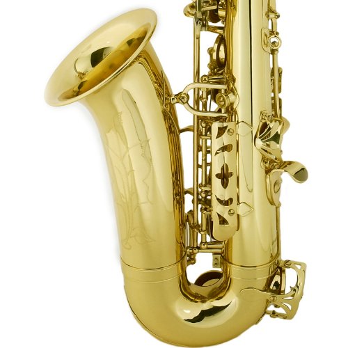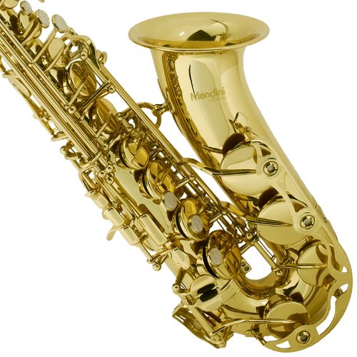 Mendini by Cecilio MAS-L+92D+PB Gold Lacquer E Flat Alto Saxophone with Tuner, Case, Mouthpiece, 10 Reeds and More