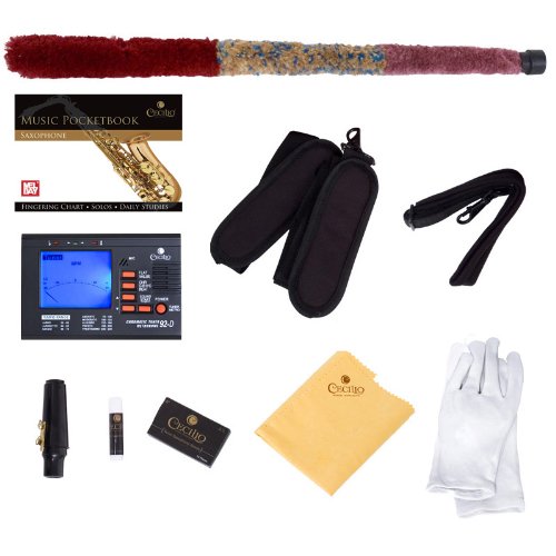 Includes: Pro-deluxe durable hard-shell case, mouthpiece, neck strap, a box of 10 reeds (Size 2.5"), cleaning cloth & rod, and a pair of gloves