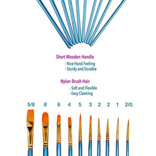 - This acrylic artist paint brush set Contains a variety of brush styles: 5/8 8 6 4 5 3 2 2 1 2/0. Length:16.5cm~18.5cm(6.5~7.3 inches)