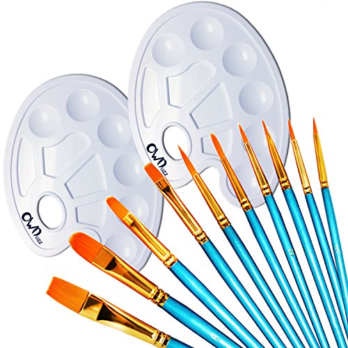 Ownuzz 10Pieces Paint Brush Set for Acrylic Painting + 2 Paint Palettes, Professional Art Paint Brush Set for Watercolor, Acrylics, Oil Painting Supplies Ceramic Terracotta Craft Art Face Painting