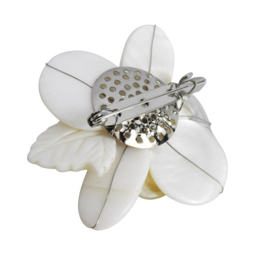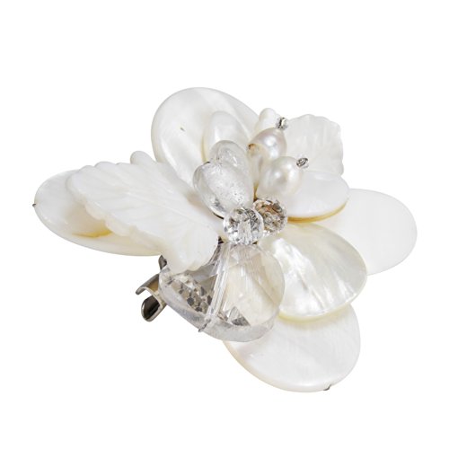 -. Feature : Material: Glass, Base metal / Stone: Cultured freshwater pearls, Mother of pearl, Crystal / Flower Measurements: 65 mm (2.56 in) wide x 50 mm (1.97 in) long / Style: Handmade, Pin/Brooch, Floral, Nature | Pearl Grade: C / Color: White | Weight: 29 grams
