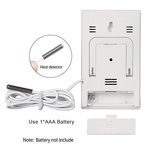 ★ Low power consumption, a multifunctional device with sensor wire can help to measure the indoor, outdoor, baby shower water, fish tank or refrigerator temperature and so on. Wire length 4.69Ft. It takes 1 AAA battery【Battery Not Included】.