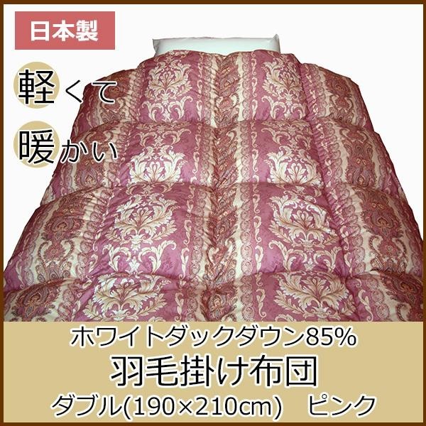 fk094igrjs高品質ホワイトダックダウンを贅沢に使用。軽くて暖かく、ムレずに快適な羽毛掛け布団です。 製造国:日本 素材・材質:【詰め物】ホワイトダックダウン85%、フェザー15%【側地】ポリエステル85%、綿15% 商品サイズ:ダブル(190×210cm) 重量:詰め物:1.4kg 仕様:洗濯不可※お届け地域により、別途運賃がかかる場合やお届けできない場合がございますので、お問い合わせ下さい。