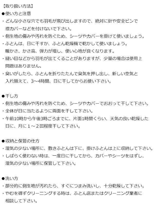 軽くて暖か。高品質ホワイトダックダウン使用羽毛布団。