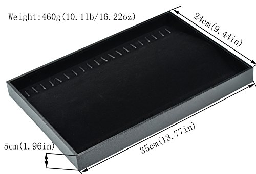 -. Binding : Jewelry -. Brand : Ginasy -. Color : Black -. Department : womens -. EAN : 1000001116792 -. Feature : Size:13.77"x9.44"x1.96"(35cm*24cm*5cm) / Crafted from beautiful black velvet that's soft to the touch and will protect your jewelry from any kind of damage or abrasion / This jewelry display will add a modest touch of elegance to any room its placed it. It's also ideal for store front display cases / Showcase your necklaces in a very elegant manner / Perfect gift that makes your jewelry stand out -. IsAutographed : 0 -. Label : Ginasy -. Manufacturer : Ginasy -. Model : JM-10015 -. MPN : JM-10015 -. PackageQuantity : 1 -. PartNumber : JM-10015 -. ProductGroup : Home -. ProductTypeName : FASHIONNECKLACEBRACELETANKLET -. Publisher : Ginasy -. Size : one size -. Studio : Ginasy -. Title : Ginasy Black Velvet 20 Hook Necklace Jewelry Tray Leather Display Organizer -. UPC : 605996783755