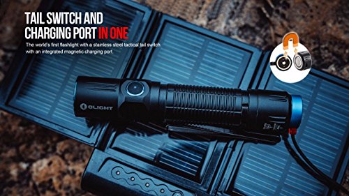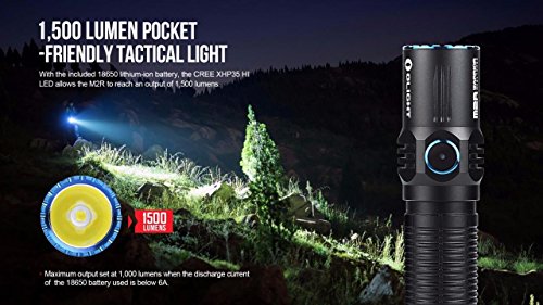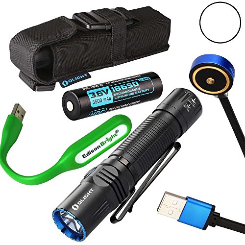 Olight M2R Warrior USB rechargeable 1500 Lumen CREE LED Flashlight EDC with 18650 rechargeable battery, magnetic charging cable with EdisonBright USB powered reading light bundle