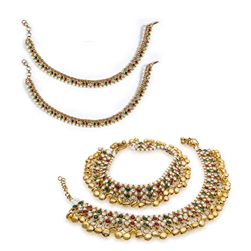 -. Feature : Stone:AmericanDiamond & Beads / Color:Golden / Finish:Gold Plated / Package Quantity:2 Pair Of Anklets / Care Instruction: Keep it away from perfume & Water