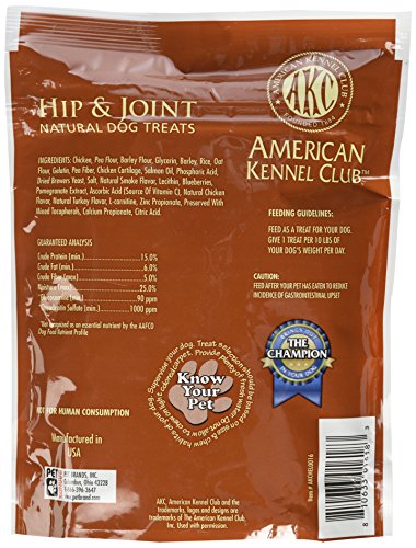 -. Binding : Misc. -. Brand : Pet Brands -. EAN : 0810633016183 -. Feature : Made with Real Chicken / Enhanced with Natural Glucosamine and Chondroitin / Made with Blueberries and Pomegranate / Promotes Hip and Joint Health / Made in the USA -. Label : Pet Brands Inc. -. Manufacturer : Pet Brands Inc. -. Model : AKCHEL0016 -. MPN : AKCHEL0016 -. NumberOfItems : 1 -. PackageQuantity : 1 -. PartNumber : AKCHEL0016 -. ProductGroup : Pet Products -. ProductTypeName : PET_SUPPLIES -. Publisher : Pet Brands Inc. -. Size : 3.25 x 7.25 x 10-Inch -. Studio : Pet Brands Inc. -. Title : American Kennel Club Chicken All Natural Treats for Hip and Joint 06oz/170g -. UPC : 810633016183