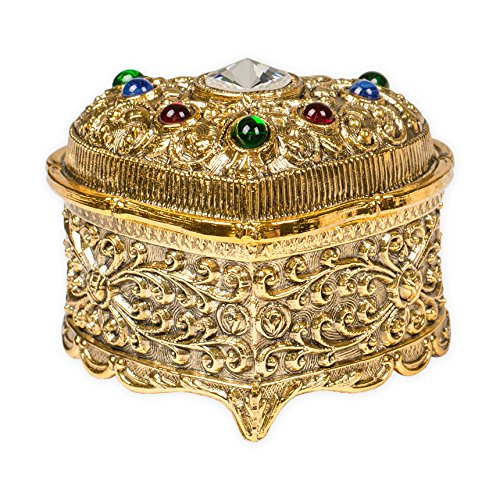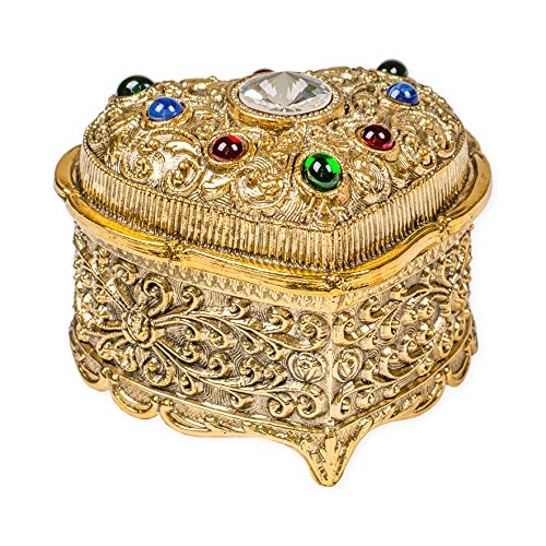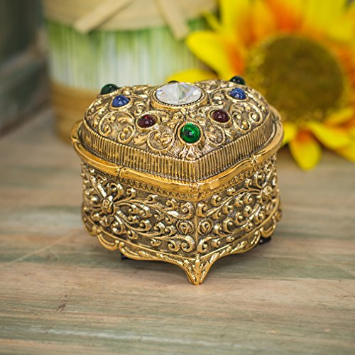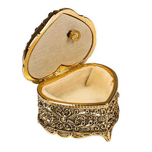 Heart Shaped Swarovski Crystal Jewel Gold Tone Metal Music Box Plays Tune Lara's Theme