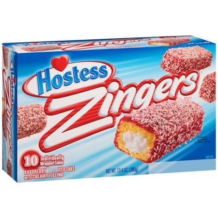 -. Feature : Hostess Zingers / Raspberry Iced Cake with Creme Filling / 10 per Box / 2 Boxes per Order