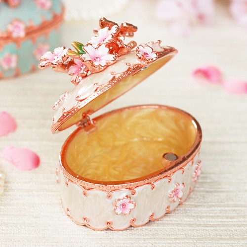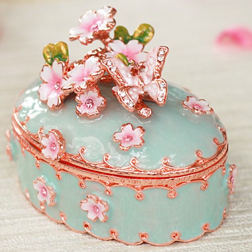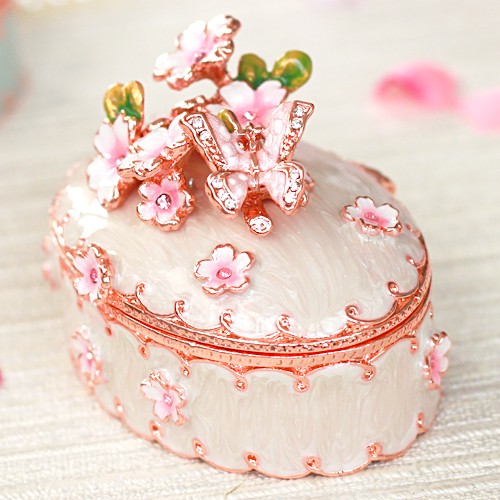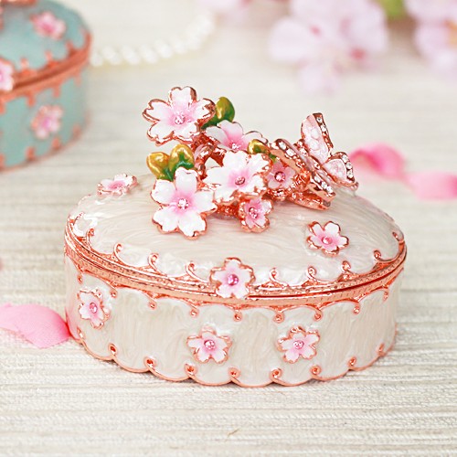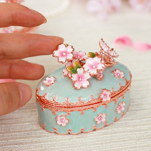 | ジュエリーボックスと言えば、指輪やピアス、ネックレスなどのアクセサリーを入れる引き出し型のケースを思い浮かべる方が多いかもしれません。 ピィアースのジュエリーボックスは、動物や花などをモチーフに作られ、合金製でずっしりとした重さがあります。また高品質のクリスタルガラスを贅沢に使用。まるでジュエリーボックスそのものが宝石のような、高級感溢れる仕上がりです。 小物入れとしても使えるように開閉口には磁石が取り付けてあり、アクセサリーなどなくしやすいアイテムの収納ができます。キラキラと美しく輝く宝石箱は、そのまま飾って楽しめるインテリア雑貨として多くの方に愛されています。 国内トップクラスのジュエリーボックスメーカーであるピィアースは、2004年ごろから本格的に宝石箱の製造を始め、現在のジュエリーボックスはなんと300種類以上。大規模展示会でもご好評いただいており、全国有名百貨店でも販売されています。 自社工場でひとつひとつ丁寧に手作りし、原型作成、研磨、加工、着色、小さなクリスタルガラスの取り付けなども全て手作業で行われるこだわりのハンドメイド品。完成後は厳しい検品の後、丁寧に梱包作業をしお客様にお届けしております。 ピィアース商品は、全国有名百貨店および全国有名宝石店チェーンにてお取り扱いいただいている高品質商品です。 ★自分へのご褒美に…コレクションして並べて飾ると、さらにかわいらしさUP! ★恋人へのプレゼント…中にアクセサリーを入れて、サプライズな贈り物として ★家族への感謝ギフト…お母さんや姉妹へ、日頃のありがとうの気持ちを込めて ★誕生日プレゼント…お友達の喜ぶ顔が見たいから、いつもと違うキラキラギフトを ★小さな女の子へ…まるでお姫様が使っているようなキラキラ宝石箱は女の子の憧れ! |